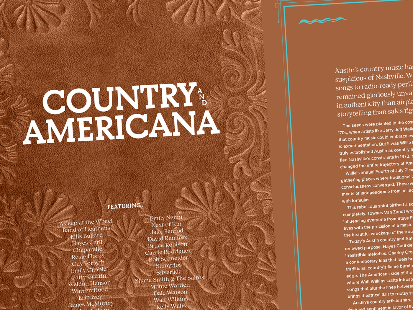 - 160+ artist profiles across seven genres: Country/Americana, Blues/Soul, Rock, Hip-Hop/R&B, Jazz, Latin/World and EDM/Experimental